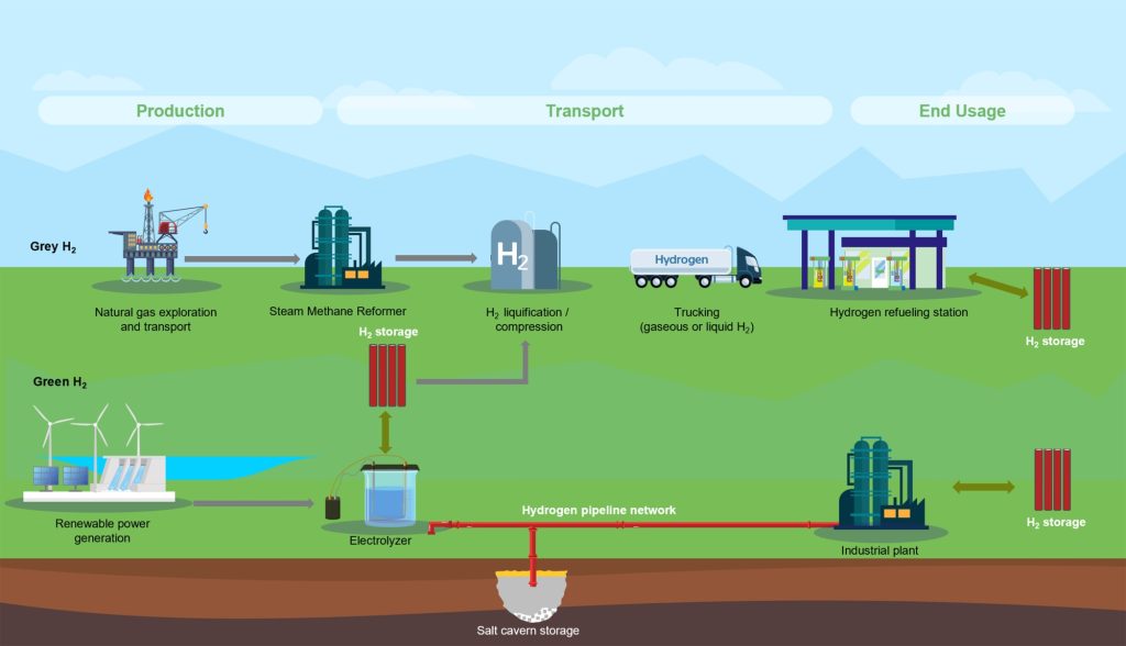 The need to balance intermittent production with steady supply therefore demands significant hydrogen storage capacity.